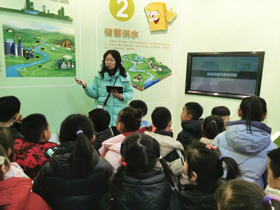 步入宣教中心,孩子们立刻被丰富多彩的湿地生态资源展示所吸引。讲解员用生动有趣的语言,向小朋友们介绍了湿地的生态功能、黄河湿地的独特价值以及栖息在这里的各种鸟类。“羊皮筏子是怎么做的?”“这里的水鸟的嘴和脚这么长!”孩子们睁大眼睛,认真聆听,不时发出惊叹和提问。同时,他们通过多媒体设备,感受湿地生态系统的精妙之处。