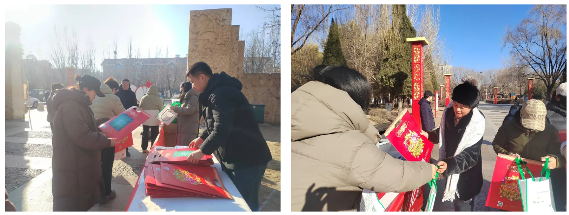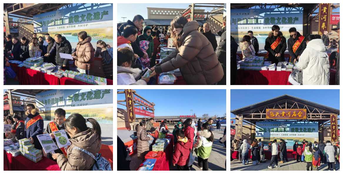 工作人员现场发放《中华人民共和国湿地保护法》、野生动植物保护法律法规、湿地保护宣传袋、宣传抽纸、包头黄河湿地常见鸟类辨识图、春节对联、文创钥匙扣等精美宣传品,不时有人询问宣传品上的内容,工作人员耐心解答的同时,不忘叮嘱大家践行湿地保护理念。